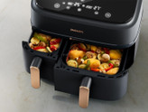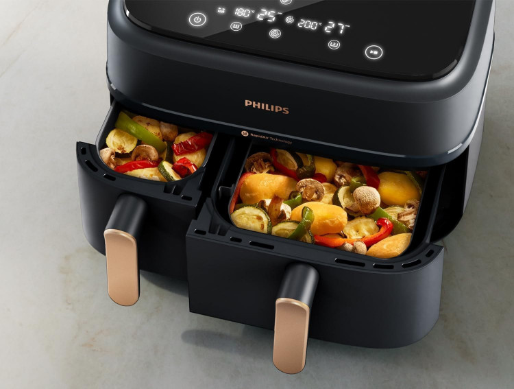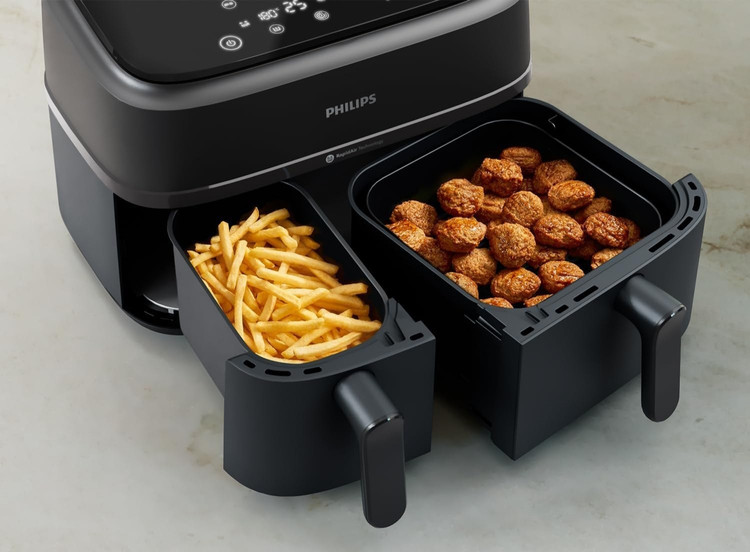 از آنجایی که این سرخ کن دارای دو محفظه پخت بوده می توان درون هر محفظه مواد غذایی یکسان یا متفاوت را قرار داده و آماده کرد. زمان های پخت را به طور خودکار در 2 کشو همگام سازی کنید تا هر دو غذای شما با هم آماده سرو شوند. سیستم خاموش شدن خودکار موجب شده تا بعد از پخت غذا، دستگاه خاموش گردد و احتمال سوختن به شدت کاهش یابد.