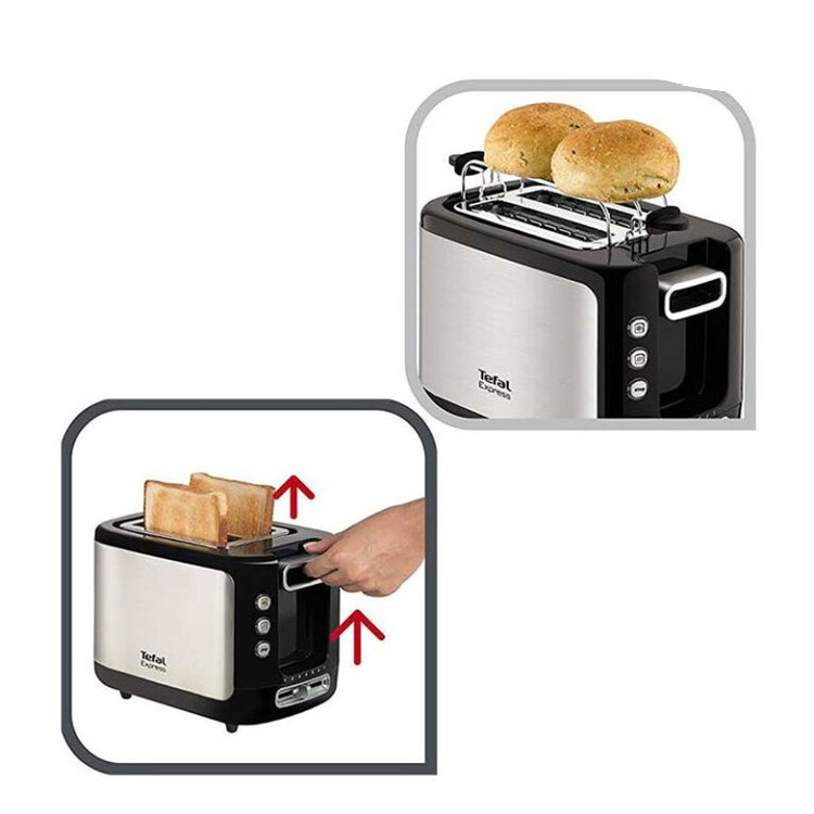دیگر مزیت این دستگاه نیز بالا آوردن نان برشته به صورت اتوماتیک می باشد، یعنی توسط توستر تفال مدل TT3650 نیاز نیست دستی نان را بالا آورید. تمامی این کارها به صورت اتوماتیک انجام شده و فقط شما نان را دریافت و استفاده می کنید. جنس بدنه دستگاه از استیل ضد زنگ بوده و از طراحی بسیاری زیبایی برخوردار است که خط و خش نگرفته و به راحتی توسط یک پارچه تمیز می شود. علاوه بر کار برشته سازی می توان از توستر تفال مدل TT3650 عملیات گرم کردن مجدد نان و یخ زدایی را انجام داد. این دستگاه دارای قابلیت های زیادی بوده و در ادامه در مورد آن توضیح می دهیم.