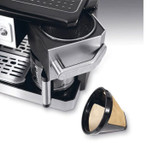 در نیمه سمت راست اسپرسو ساز دلونگی مدل BCO420 ، قهوهساز فیلتر را با سیستم انحصاری دسترسی به مخزن آب و نگهدارنده فیلتر مییابیم. اسپرسو ساز دلونگی مدل BCO420 با فیلترهای کاغذی قابل استفاده مجدد در اندازه 1×4 کار می کند و به ما امکان می دهد 10 فنجان قهوه (کمی بیش از یک لیتر قهوه) تهیه کنیم.