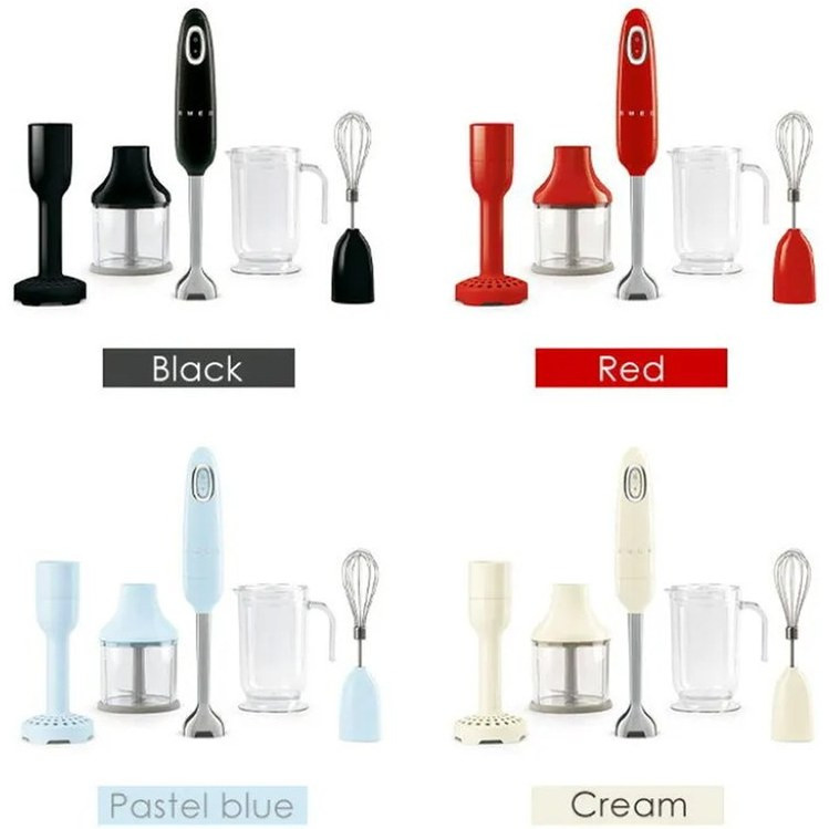 شرکت اسمگ به تولید محصولات با طراحی زیبا و کلاسیک شهرت دارد. سبک طراحی اسمگ به گونهای است که اگر یک محصول از این شرکت مدت زیادی نیز جلوی چشم باشد طراحی آن هنوز دلنواز و دلچسب است. اصالت طراحیهای ایتالیایی که در جهان شهرت دارند به خوبی در شرکت اسمگ خود را نشان میدهد و این گوشت کوب نیز آن را به خوبی به ارث برده است. به علاوه رنگ بندیهای زیبا و متنوعی نیز دارد. گوشت کوب یا همزن دستی اسمگ مدل HBF22 در چند رنگ متفاوت طراحی شده است. هر رنگ برای سلیقهی متفاوتی در نظر گرفته شده است و ویژگیهای تمامی رنگهای این مدل از گوشت کوب اسمگ یکسان میباشد.