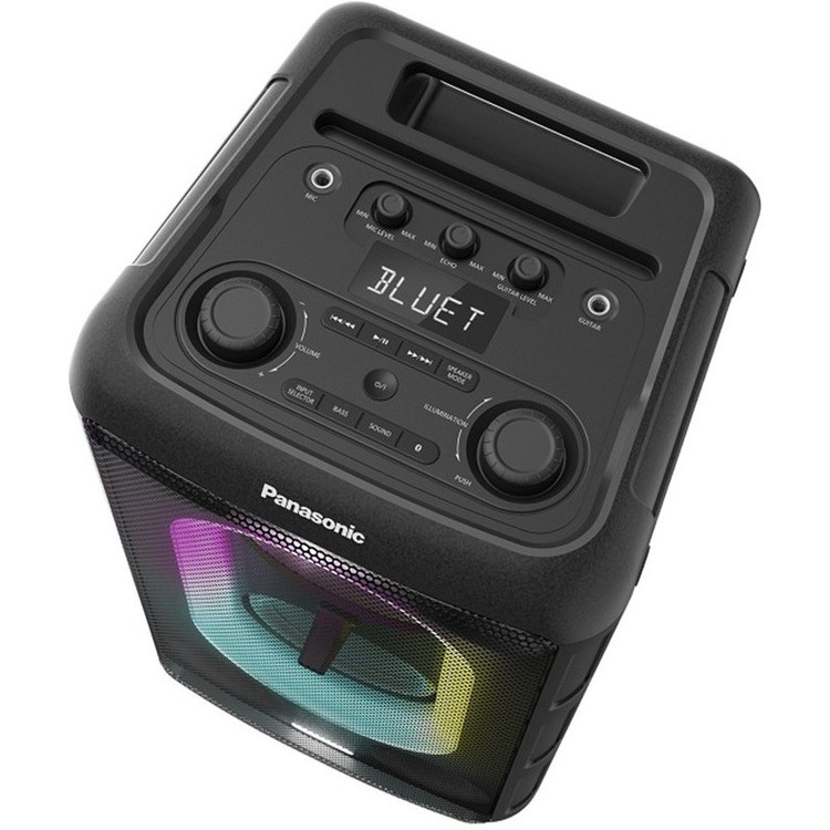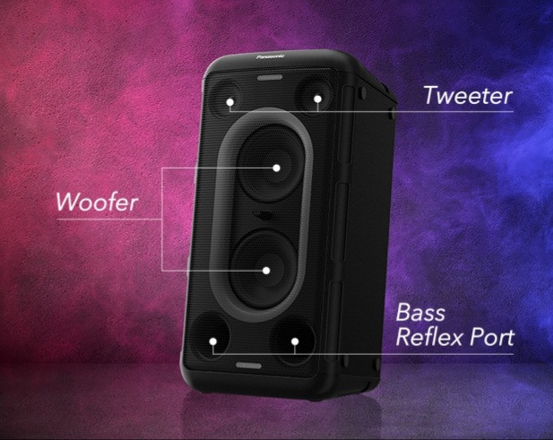 این سیستم پخش پاناسونیک دارای 2 عدد توییتر 5.7 سانتی متر و 2 عدد ساب ووفر 14 سانتی متر می باشد. این سیستم توانایی تولید صدایی قدرتمند، رسا و با کیفیت با دو ووفر و توییتر دوبل را دارد. همچنین نورپردازی 7 رنگ این اسپیکر بلوتوثی را تکمیل می کند.