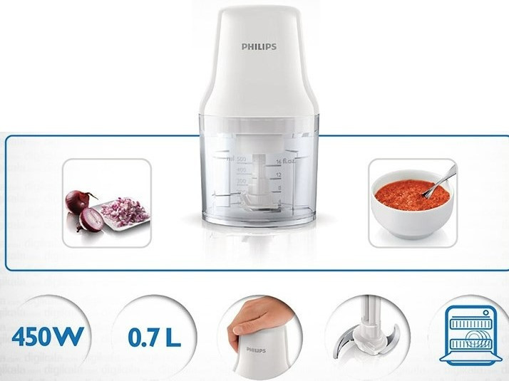خردکن فیلیپس HR1393 سری Daily Collection دستگاهی پرقدرت با توان 450 وات و تیغه تیز کمک می کند راحت، سریع و بدون زحمت زیاد هر غذای خانگی را تهیه کنید.
