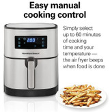 سرخ کن دیجیتال 5.6 لیتری همیلتون بیچ غذای ترد و لذیذ را بدون روغن ایجاد می کند. سبد 5.6 لیتری آن برای تغذیه یک خانواده غذای کافی را دارد و از آنجایی که سریعتر از اجاق های سنتی پخت می شود، زمان کمتری را برای تهیه غذا صرف خواهید کرد.