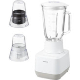 مخلوط کن دوکاره پاناسونیک مدل MX-MG5421 با طراحی ساده و شکیل به رنگ سفید/بژ عرضه می گردد. این محصول که توسط برند مطرح و معتبر panasonic تولید می شود از کیفیت ساخت بالایی برخوردار بوده و طول عمر زیادی را می توان برای آن متصور شد. قسمت بدنه از پلاستیک مستحکم و پارچ مخلوط کن از شیشه مقاوم و بادوام ساخته شده است.