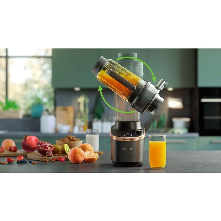 این محصول جدید فیلیپس اولین مخلوط کن با سرعت بالا و تلفیق مخلوط کن و آبمیوه گیری است. به لطف طراحی انقلابی شیشه و فیلتر یکپارچه، نوشیدنی خود را با بافتی نرم متناسب با ترجیحات خانواده خود دریافت می کنید. از اسموتی های کاملا ابریشمی گرفته تا آبمیوه های شفاف، پیشرفته ترین مخلوط کن فیلیپس بیشترین تنوع را ارائه می دهد. با کمک این دستگاه و تهیه انواع آب میوه ها و اسموتی ها می توانید مهمانی های خود را رنگی و جذاب تر کنید.
