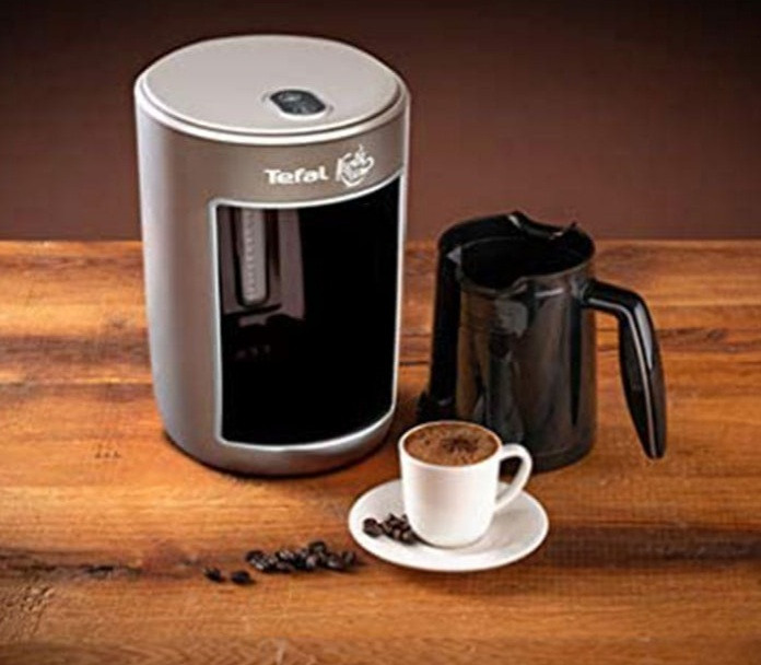 قهوه ترک از انواع پرطرفدار قهوه است و قهوه ساز تفال به طور خاص برای تهیهی قهوه ترک طراحی شده است. قهوه ترک ساز تفال مدل CM820ATR محصولی زیبا و کارآمد که از کیفیت بالایی برخوردار است . این دستگاه با ظاهری زیبا و بدنه پلاستیکی از پایه و یک پارچ تشکیل شده است . این محصول میتواند به سرعت و با حفظ عطر و طعم قهوه با کیفیت و لذیذی را آماده نوشیدن کند . زمان تخمین زده شده برای آمادهسازی قهوه ، کمتر از 2 دقیقه می باشد و می توان گفت ، این دستگاه برای مصارف خانگی و اداری بسیار مناسب و مقرون به صرفه است . قهوه سازTefal CM820ATR از حسگر جوش بهره می برد که در صورت رسیدن به دمای جوش ، هشدار می دهد و از طریق آلارم ، آماده سازی قهوه را اعلام می کند . این دستگاه قهوه ساز دارای صفحه لمسی میباشد و امکان تهیه ۴ فنجان قهوه ترک به طور همزمان دارد . قهوه ساز تفال مدل CM820ATR دارای سیستم حس گرهوشمند است که مانع از سرریز شدن قهوه می شود و دارای پیمانه اندازه گیری ۷ گرمی و ۸ گرمی قهوه می باشد . دکمه هوشمند تاچ و خاموش شدن اتوماتیک از دیگر ویژگی های این قهوه ساز است .