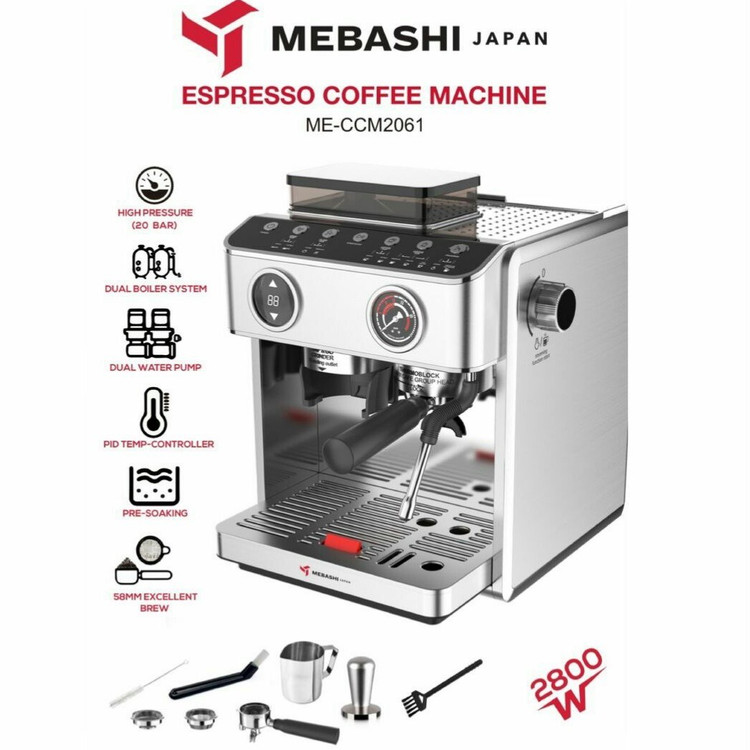 مباشی همیشه برای ساخت محصولات خود از بهترین ها استفاده کرده است، در ساخت اسپرسوساز نیمه صنعتی مدل ME-CCM 2061 نیز سعی داشته تا همان روش همیشگی خود را سر لوحه کار خود قرار دهد، به همین علت این محصول دارای کیفیت بسیار بالایی می باشد. بدنه این اسپرسو ساز از استیل بسیار مقاوم و ضد زنگ ساخته شده که دوام بسیار بالایی دارد. همچنین این محصول مجهز به صفحه نمایش PID بوده که اطلاعات دقیق دما و زمان عصاره گیری را به شما نشان می دهد تا بهترین نتیجه را از قهوه خود بگیرید. به علاوه این محصول با لوازم جانبی کامل شامل پرتافیلتر نیمه صنعتی سایز 58، پیچر، پیمانه، تمپر، سبد پرتافیلتر تک شات و دو شات، و سایر وسایل نظافتی برای شما ارسال خواهد شد.