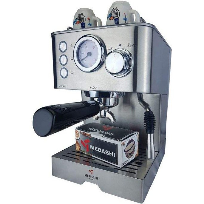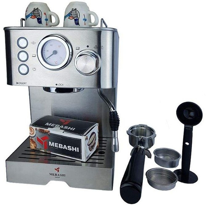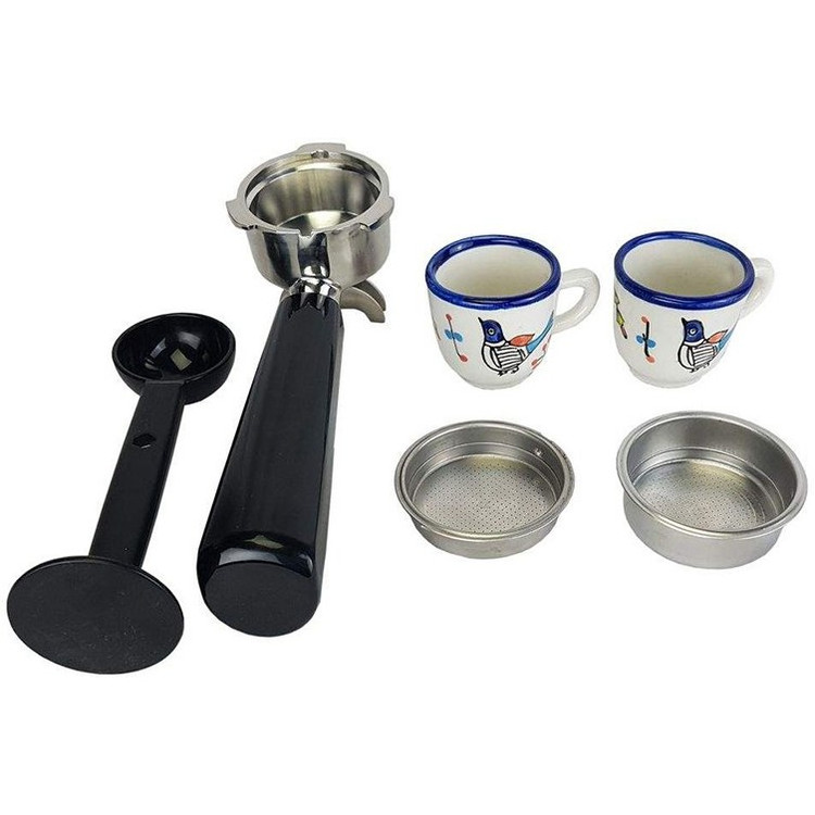 - این دستگاه تمپر، پیمانه قهوه، سینی چکه گیر و نازل بخار دارد.
