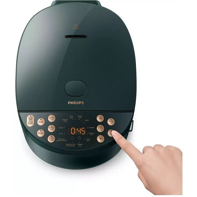 پلوپز چند کاره فیلیپس مدل HD4518 با طراحی شیک و زیبای خود به رنگ سبز تیره جنگلی مناسب آشپزخانه های مدرن امروزی طراحی شده که با دیدن آن عاشقش می شوید.
