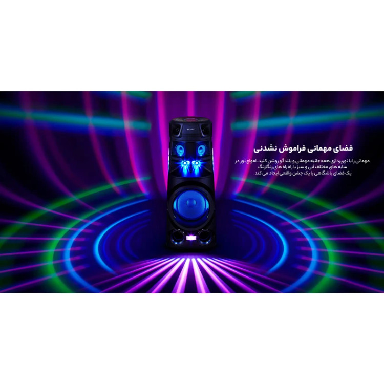 اسپیکر بزرگ خانگی Sony MHC-V73D با طراحی جامع و کاربردی ارائه شده است.