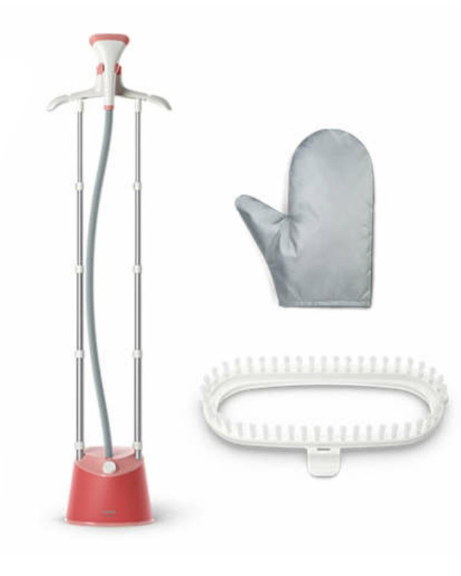 این بخارگر به صورت ایستاده طراحی شده و دارای یک میز اتو و دو میله قابل تنظیم برای ارتفاع می باشد.