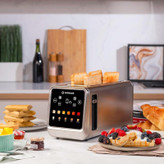 نوع گرمایش:المنت گرمایشی, تعداد درگاه :قرارگیری نان۲ عدد, تعداد برش های قرارگیری: نان۴ عدد, برنامه ها:نان – باگل – وافل – شیرینی – مافین, دکمه ها:کلید اهرمی برای بالا بردن نانکلیدهای لمسی: روشن/خاموش – کنسل کردن – تُست کردن یک عدد نان – ذخیره تنظیمات – یخ زدایی – گرم کردن مجدد – برنامه های خودکار