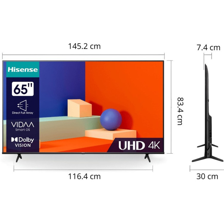 این تلویزیون 65 اینچ هایسنس از ضخامت اندکی برخوردار است و اصطلاحا دارای طراحی اسلیم می باشد.