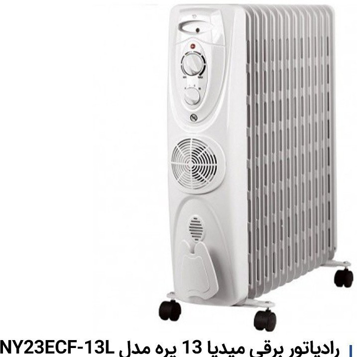- شوفاژ برقی میدیا مدل NY23ECF-13L دارای 13 پره می باشد که به کمک المنت گرمایی 2300 وات تعبیه شده در داخل رادیاتور و گرم کردن روغن داخل آن در مدت کوتاهی گرم شده و محیط را گرم می کند.