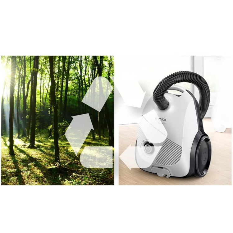 جاروبرقی بوش سری 2 مدل BGLS2WH1H از نوع کیسه ای با ظرفیت 3.5 لیتر بوده که نیاز به تعویض مکرر کیسه گرد و غبار نیست.