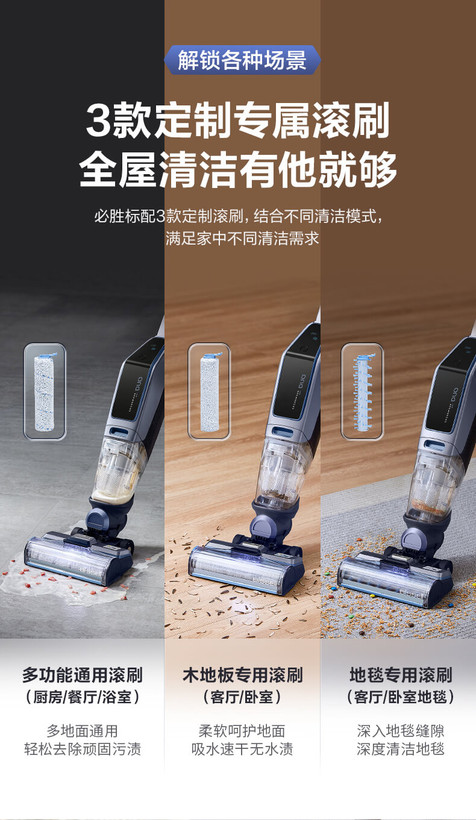کارکرد سه رول جارو شارژی بیسل X7 Plus 3479Z مخصوص جارو زدن کامل روی فرش، مخصوص جارو زدن روی پارکت، سرامیک و البته ترکیبی آنها نیز کاربرد خود را نشان داده است.