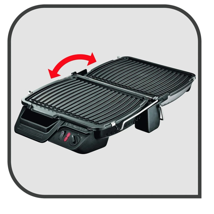 دستگاه گریل GC306028 تفال ، دارای دو صفحهی شیاردار چدنی در قسمت بالایی و زیرین دستگاه است و برای تهیهی گریل انواع موادغذایی و گوشت و همچنین درستکردن ساندویچ استفاده میشود .