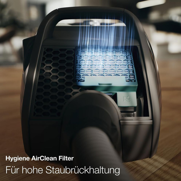 برای فیلتر کردن ذرات بسیار ریز، مجهز به فیلتر Hygiene AirClean بوده که قادر است گرد و غبار را تا حداکثر 99.9% جذب کند.