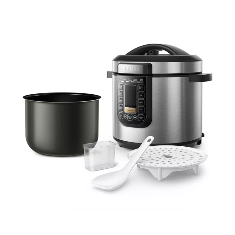 اگر بخواهیم به اصلی ترین ویژگی مولتی کوکر فیلیپس اشاره کنیم؛ بی شک طراحی جذاب آن می باشد. بدنه این محصول از جنس استیل ضد زنگ و بسیار مقاوم ساخته شده است که در برابر هر ضربه ای محکم بوده و تحمل هر گونه فشار و دما را دارد. ظرف داخلی این مولتی کوکر از جنس آلیاژ آلومینیوم با دوام ساخته شده است، که گرما را به بهترین شکل ممکن پخش می کند. روکش دیگ این محصول به صورت ضد خراش و نچسب ساخته شده است که علاوه بر عدم چسبندگی مواد غذایی، می تواند شستشوی دستگاه را نیز آسان کند. همچنین درب داخلی مولتی کوکر برند فیلیپس به راحتی جدا سازی می شود و شما می توانید آن را تمیز کنید.