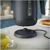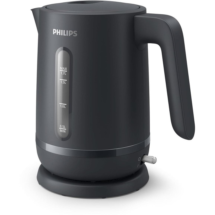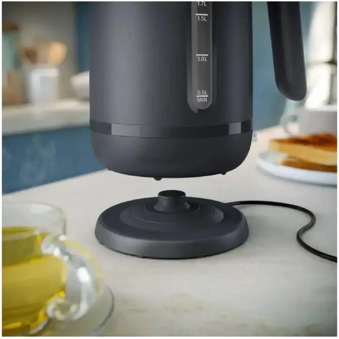 کتری فیلیپس HD9314 از طراحی ساده و شکیل به رنگ جذاب خاکستری ذغالی بهره می برد و روی کابینت آشپزخانه تان به زیبایی می درخشد. ظرفیت این کتری برقی 1.7 لیتر بوده که برای خدمت به کل خانواده و مهمانی ها مناسب بوده و در حدود 7 لیوان آب جوش را تحویل می دهد. بدنه از پلاستیک مستحکم ساخته شده و قسمتی از آن جهت مشاهده آب داخل کتری به صورت شفاف طراحی شده است. بر روی بدنه نشانگر میزان لیتر درج شده که شما می توانید برحسب نیاز خود آب داخل کتری کرده و بجوشاند. در نتیجه در مصرف انرژی و آب صرفه جویی خوبی می گردد.