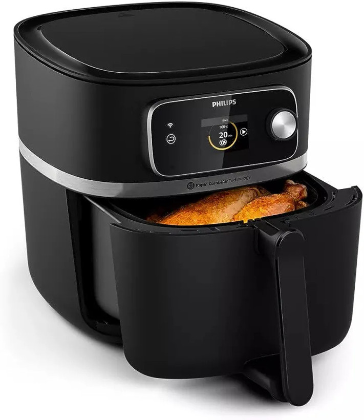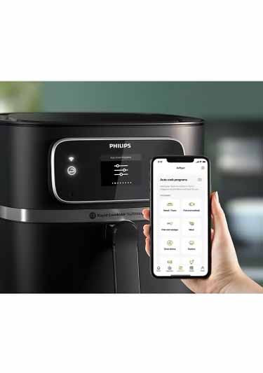 سرخ کن بدون روغن فیلیپس مدل HD9880 (Philips air fryer) جدید ترین سرخ کن ساخته شده توسط این کمپانی است و دارای اپلیکیشن اختصاصی می باشد و قابلیت اتصال به WIFI دارد به همین علت شما می توانید به راحتی و با استفاده از گوشی خود تنظیمات این سرخ کن را از هر فاصله ای تعیین کنید. همچنین این سرخ کن تنها سرخ کن دارای سوپاپ تشخیص میزان پخت مواد غذایی است