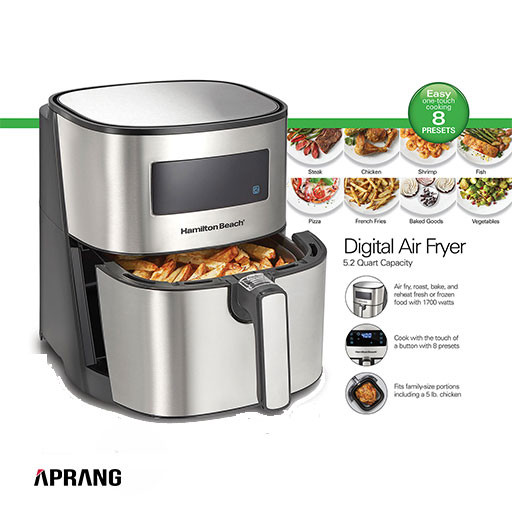 سرخ کن دیجیتال همیلتون بیچ 5.6 لیتری با 8 پیش تنظیم برای سرخ کردن، برشته کردن، پختن، گرم کردن مجدد غذای آسان سریع، 1700 وات، سبد نچسب آسان برای تمیز کردن با کریسپر، 35075ME