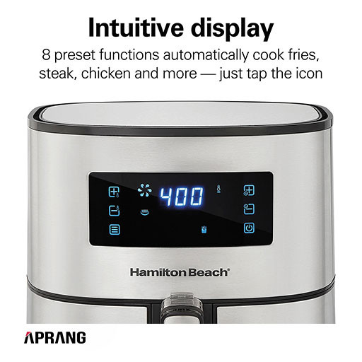 سرخ کن دیجیتال 5.6 لیتری همیلتون بیچ غذای ترد و لذیذ را بدون روغن ایجاد می کند. سبد 5.6 لیتری آن برای تغذیه یک خانواده غذای کافی را دارد و از آنجایی که سریعتر از اجاق های سنتی پخت می شود، زمان کمتری را برای تهیه غذا صرف خواهید کرد.