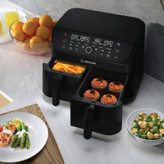 این سرخ کن با طراحی مخزن به صورت دوقلو از امکاناتی مدرن برای انجام فرایند آشپزی برخوردار است. تهیه وعدهها به صورت مجزا و در عین زمان در یک زمان امتیاز بزرگ دستگاه محسوب میشود. علاوه بر این برخورداری از این فرم در ساخت موجب ایجاد ظاهری چشمنواز در محیط آشپزخانه میشود. ظرفیت کلی این هواپز ۸.۵ لیتر بوده که به طور مساوی بین دو سبد هرکدام به ظرفیت ۴.۲۵ لیتر تقسیم شده است. گفتنی است دیگر امتیاز ارزشمند این سرخ کن امکان کنترل دما و زمان برای هر سبد به صورت جداگانه است.