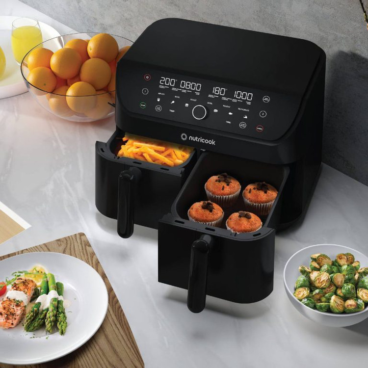 تجربهای لذتبخش و بسیار ساده را با سرخ کن دوقلو نوتریکوک مدل NC-AFD185 خواهید داشت. این دستگاه کارا دارای 12 عملکرد متنوع پخت و پز است. 6 برنامه آشپزی اصلی پخت شامل سرخ کن بدون روغن، رست کردن، کباب کردن، پخت، خشک کردن مواد غذایی و گرم کردن مجدد و همچنین 6 برنامه پیشفرض آشپزی شامل سیب زمینی سرخ شده، مرغ، برگر، استیک، ماهی و سمبوسه عملکردهای این سرخ کن را تشکیل میدهند. با اعمال تنظیمات مشابه روی دو سبد با استفاده از دکمه Dual Cook امکان تهیه وعدههای خود به صورت یکسان را خواهید داشت.