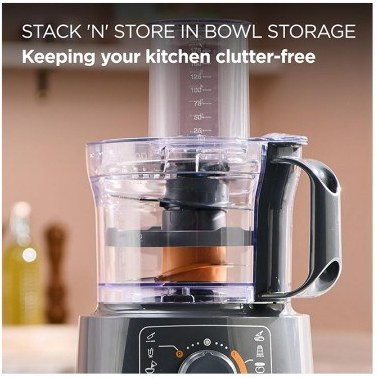 یکی از اصلی ترین کارایی این دستگاه خرد کن آن است که با استفاده از ظرف با حجم ۲,۳ لیتر به همراه تیغه های فولادی ضد زنگ امکان فراهم سازی هر نوع مواد غذایی را برای شما به وجود می آورد. جنس ظرف خرد کن تمام پلاستیک مقاوم در برابر فشار و ضربه است.