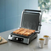 باوجود اینکه درب بالای دستگاه قابلیت تنظیم زاویه دارد، میتوان فاصله صفحات تا مواد غذایی را تنظیم کرد تا در نهایت به بافت دلخواه از غذای پخته شده رسید.