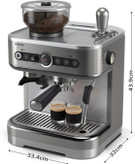 ظرفیت مختلف مخزن آب دستگاه 2.3 لیتر، حجم محفظه آسیاب قهوه 280 گرم و برای تولید فوم شیر یک میله بخار و پارچ 450 میلی لیتری در نظر گرفته شده است.