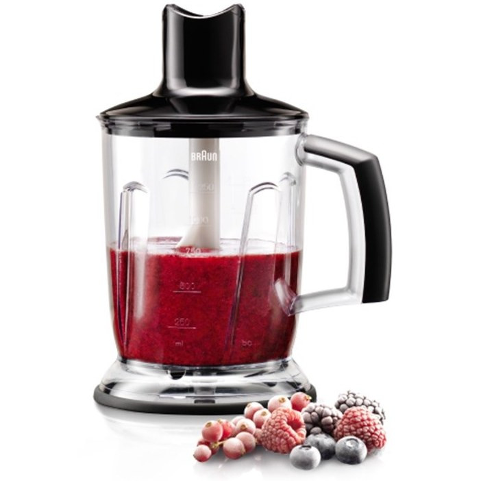 ظرفیت خرد کن کوچک 350 میلی لیتر و خرد کن بزرگ 1.25 لیتر بوده تا بنابر حسب نیاز و میزان مواد غذایی یکی از خرد کن ها را انتخاب نمایید. یک لیوان بلند پلاستیکی فاقد BPA با گنجایش 600 میلی لیتر به عنوان یک پارچ جهت مخلوط کردن و هم زدن مواد غذایی استفاده می شود.