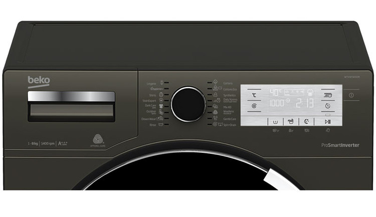 ماشین لباسشویی بکو 8 کیلو دودی WTV8734XCM بی نظیر از یک صفحه نمایش LED نیز برخوردار می باشد که در قسمت بالا و در سمت راست دستگاه قرار گرفته است تا کاربر بتواند تمام عملیات و برنامه ها را مثل دما، زمان، نوع برنامه و … را مشاهده نماید. درام لباسشویی، ظرفیتی 8 کیلوگرمی دارد و در اطراف آن نمدهایی تعبیه شده اند که میزان صدا را به میزان قابل توجهی کاهش می دهند.