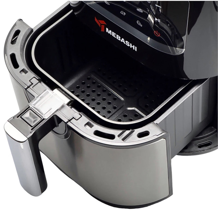 سرخ کن مباشی مدل ME-AF984 که به مانند همه سرخ کن های بدون روغن پخت غذا را از طریق سیستم گردش هوای سریع انجام می دهد.