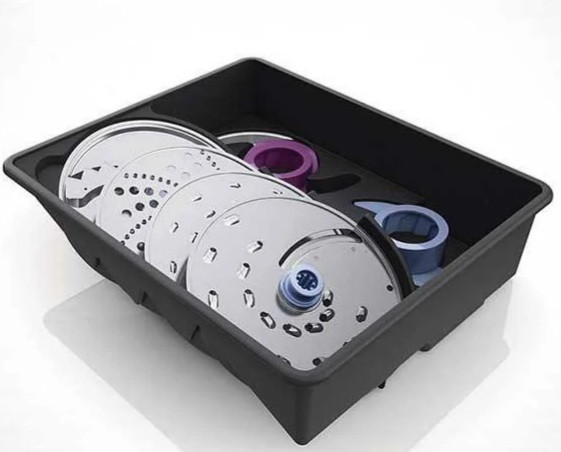 یک ابزار ورز دهنده برای مخلوط کردن و ورز دادن خمیر، یک چاقوی خرد کن استیل ضد زنگ برای خردکردن گوشت و سبزیجات، دیسک های مختلف برای رسیدگی به خرد کردن و رنده کرد، پارچ مخلوط کن، یک دیسک امولسیون ساز، آسیاب برای آسیاب کردن، از لوازم این محصول میباشند.