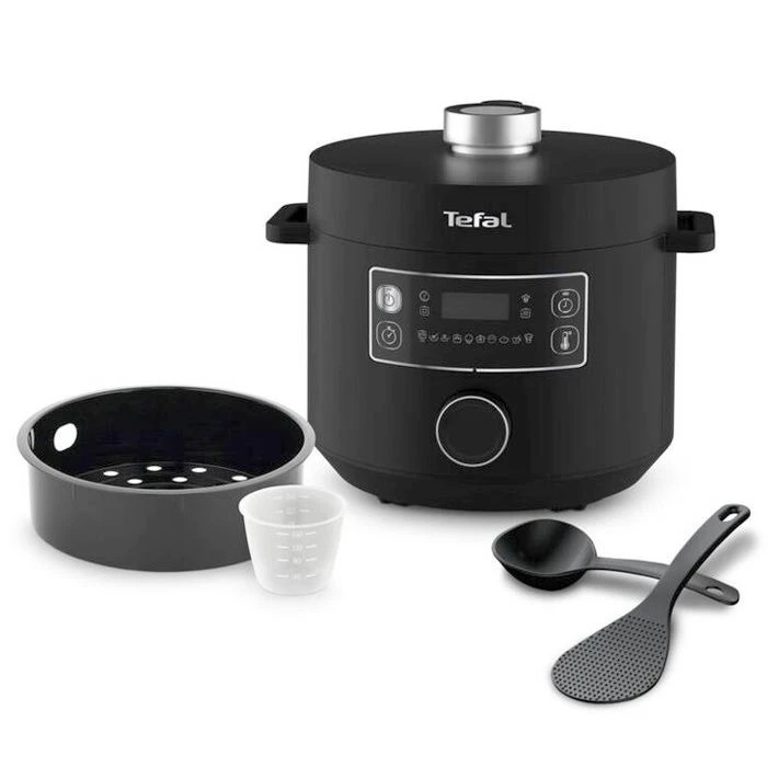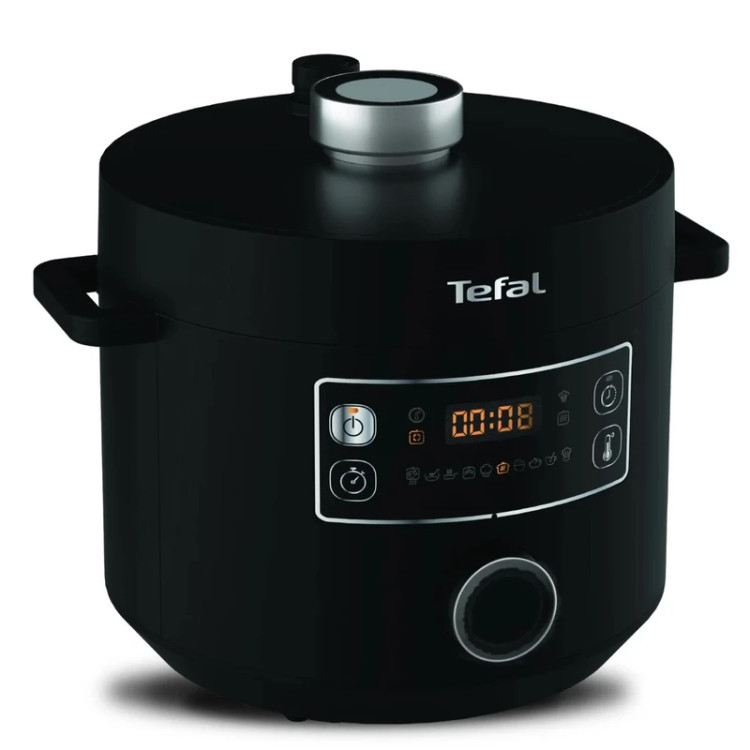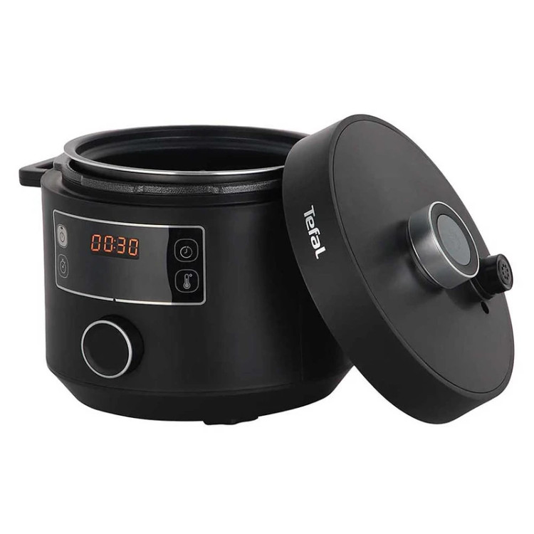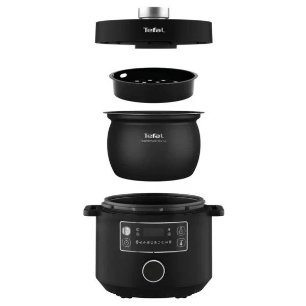 مولتی کوکر تفال مدل CY7548 با طراحی مدرن و خلاقانه دایره ای شکل به رنگ مشکی در آشپزخانه تان به زیبایی می درخشد.