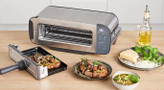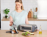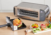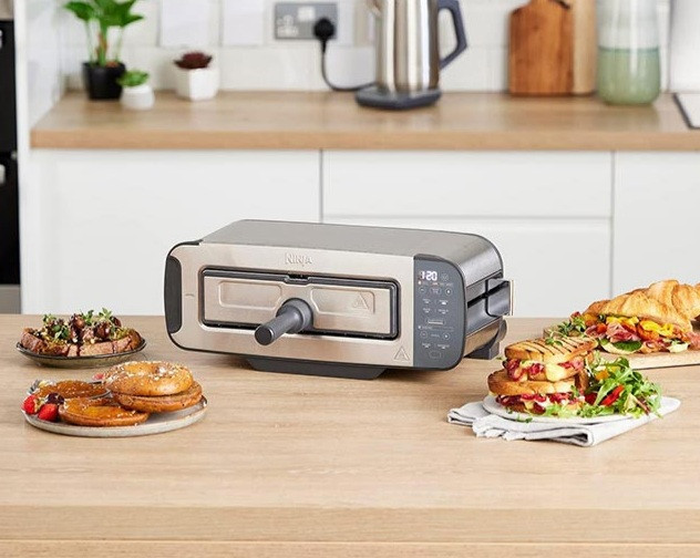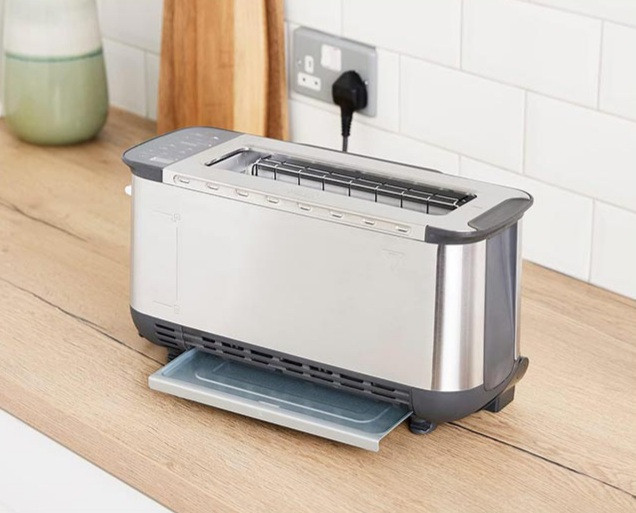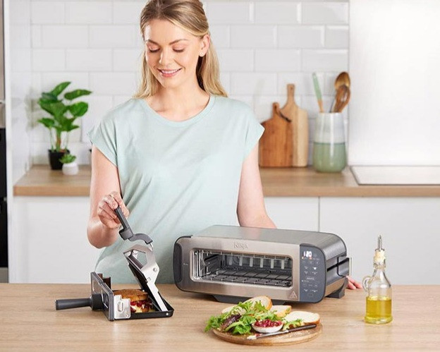 توستر نینجا مدل ST202 محصولی با طراحی مدرن و منحصر به فرد با سه کاربرد گریل، تست و پنینی ساز است که با توان مصرفی 2400 وات و بدنه استیل مستحکم و بادوام ساخته شده و در گرم نگه داشتن و یا برشته کردن نان در مدت زمان کوتاه با صرف کمترین میزان مصرف انرژی کمک شایانی می کند. به لطف قابلیت پنینی میکر می توانید به راحتی ساندویچ های برشته و خوشمزه ای را با طعم های مورد علاقه خود ایجاد کنید. همچنین نان و شیرینی های جذاب خود را به عنوان یک توستر به بهترین شکل برشته نمایید و با قرار دادن به صورت افقی به یک گریل همه کاره برای پخت، کباب کردن و غیره تبدیل گردد. این دستگاه با قابلیت تنظیم حرارت، امکان برشته کرن نان را تا 7 درجه فراهم می سازد. 2 شیار جهت قرارگیری نان برای این مدل در نظر گرفته شده و در پایین تستر، سینی برای جمع آوری خرده های نان تعبیه شده که به راحتی و با خارج کردن می توان، آن را تخلیه نمود. کار با توستر سه کاره Ninja ST 202 به آسانی صورت می گیرد و تنها کافیست، نان را در شیارها قرار داد و دستگیره پرش نان را به سمت پایین فشرد و میزان برشته شدن را تعیین کرد. زمانی که نان ها به میزان برشتگی موردنظر برسند، دستگیره به حالت اولیه خود بر می گردد و نان ها به خارج از دستگاه هدایت می شوند. گفتنی است، جهت لغو عملکرد، گرم کردن مجدد و یخ زدایی کلیدهای لمسی طراحی شده تا در صورت نیاز بتوان از آنها استفاده نمود.