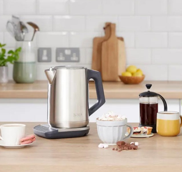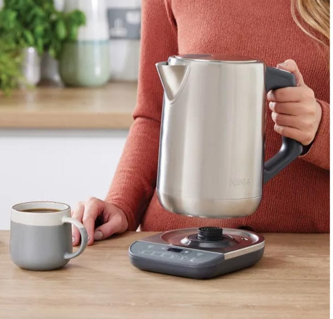 کتری استنلس استیل نینجا مدل KT201UK یک کتری برقی با کنترل دما است که به شما امکان می دهد دمای آب را برای تهیه انواع نوشیدنی های گرم به طور دقیق تنظیم کنید. این کتری دارای 6 دمای از پیش تنظیم شده برای چای و قهوه است، همچنین می توانید دما را به صورت دستی تنظیم کنید.
