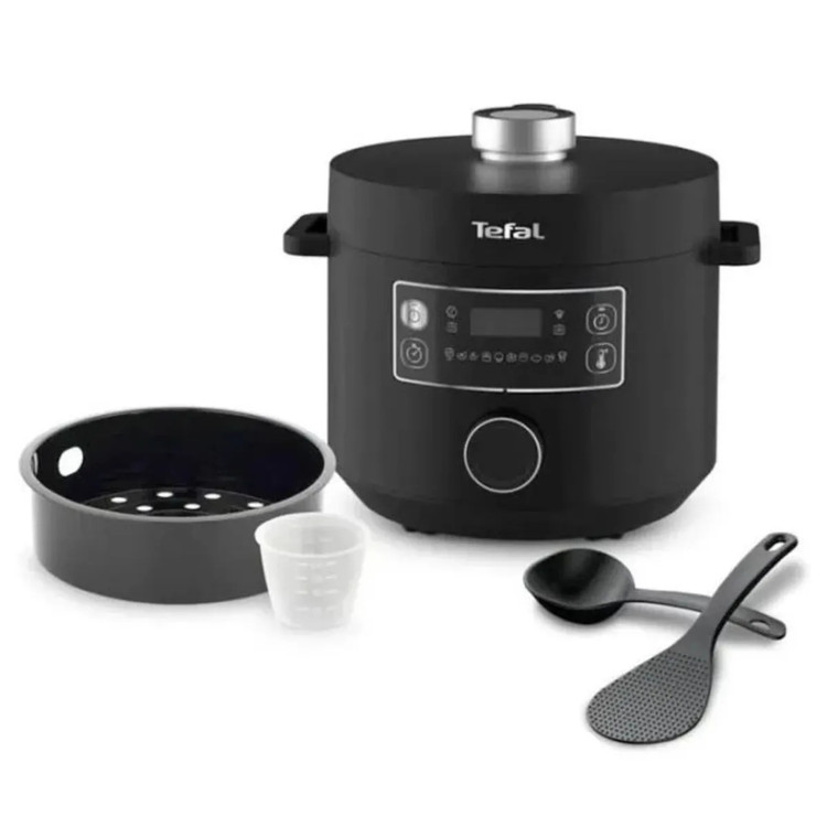 اقلام همراه زودپز تفال 7548 شامل: سبد بخارپز، پیمانه اندازه گیری، قاشق و ملاقه برنج می باشد. این لوازم جانبی برای بخارپز کردن، اندازه گیری حبوبات، سرخ کردن و هم زدن مواد غذایی کاربرد دارند. برخورداری از سینی بخارپز سبب افزایش عملکرد دستگاه برای بخارپز کردن انواع سبزیجات و حبوبات است. دریچه فشار ایمنی از انباشته شدن بیش از حد فشار داخلی جلوگیری می کند. همین امر سطح ایمنی بالای زودپز تفال میشود. زودپز برقی تفال مدل CY7548 یکی از بهترین دستگاه های زودپز موجود در بازار لوازم خانگی می باشد. توان مصرفی این محصول برابر با 1000 وات می باشد که کمک شایانی به تقویت عملکردها و میزان حرارت دستگاه می کند. این زودپز دارای 10 عملکرد مختلف و بسیار کاربردی می باشد که بر روی پنل نمایشگر دستگاه نمایان است.