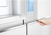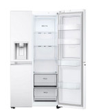 نکته: قفسههای داخلی درب یخچال کمتر هستند زیرا سیستم یخ ساز در این بخش قرار دارد، ال جی سعی داشته با تغییر دادن شکل ظاهری یعنی باریک کردن مخزن یخ ساز، فضای فریزر را از بین نبرد اما ناچار به کاهش تعداد قفسههای داخلی درب شده است.