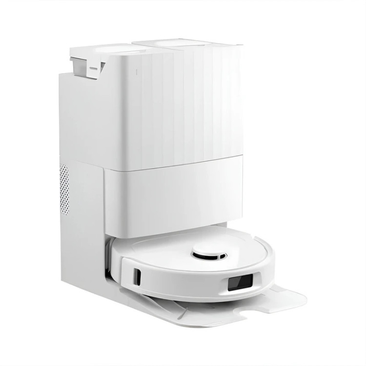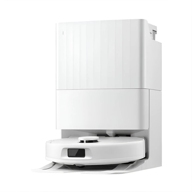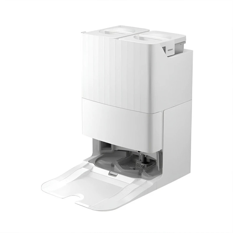 ایستگاه شارژ این جارو، به غیر از شارژ باتری، وظایف مهم دیگری هم انجام میدهد؛ از جمله تخلیه خودکار مخزن زباله و شستشوی پدهای تی.