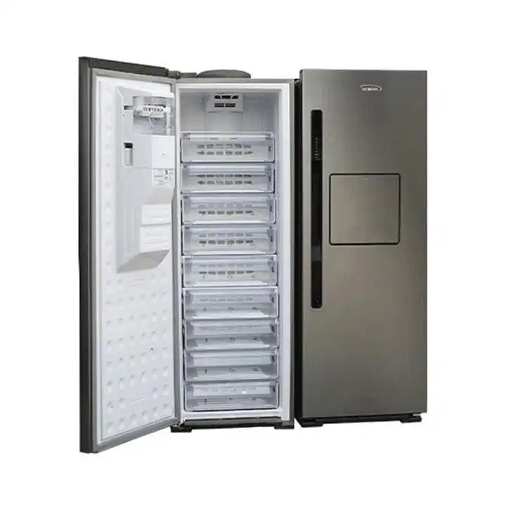این محصول دارای یخچال 5 طبقه شیشهای متحرک و دو کشو مخصوص نگهداری میوه و سبزیجات و فریزر 9 طبقه و 7 کشویی میباشد.