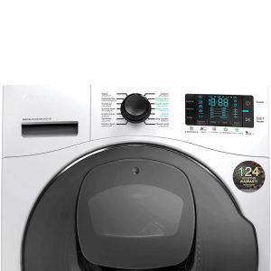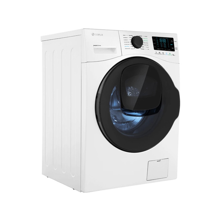 ماشین لباسشویی اسنوا SWM-F92W نوع درب از جلو بوده و بدنه ای به رنگ سفید و مخزن 9 کیلویی دارد.