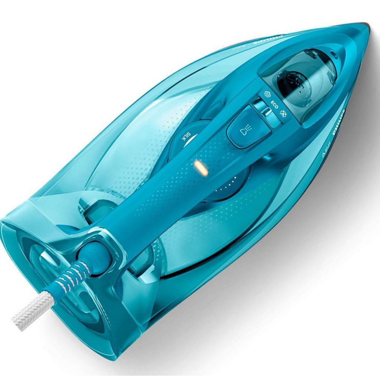 طراحی بسیار زیبا و استفاده از رنگ چشم نواز آبی دریایی / فیروزه ای ظاهر خاص و بسیار جذاب به این اتو بخشیده است.