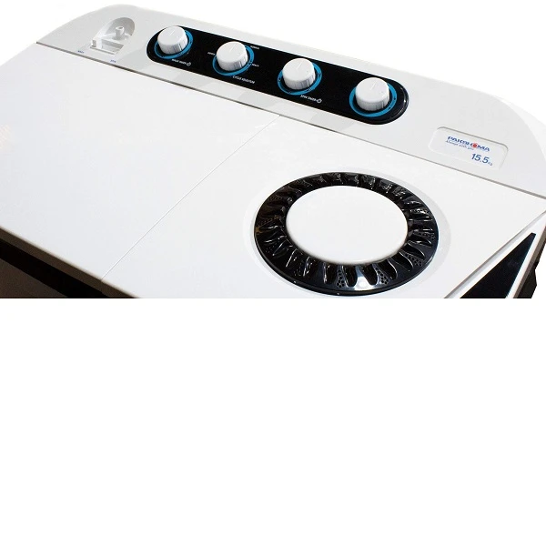 ماشین لباسشویی پاکشوما مدل PTF 1504 AJ ظرفیت 15.5 کیلوگرم یکی از لباسشویی های نیمه اتوماتیک بوده که شاید به اندازه لباسشویی های تمام اتوماتیک، حرفه ای و پیشرفته نباشد اما قطعا کارراه انداز بوده و به کمک آن می توان انواع لباس، ملحفه ها، پرده، پتو، عروسک و… را شست.