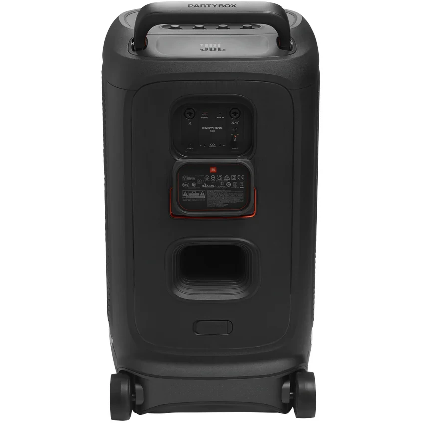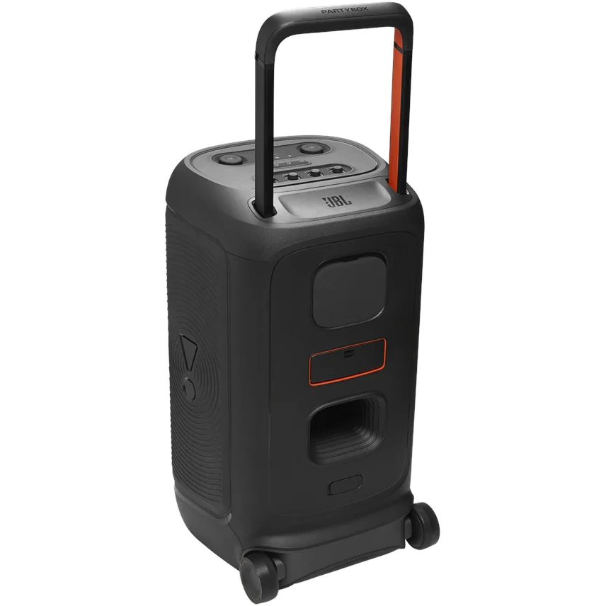 با استاندارد IPX4، اسپیکر در برابر پاشش آب مقاوم است. چرخهای پهن و دسته تلسکوپی باعث میشوند تا جابجایی آن راحتتر باشد—با وزن حدود ۲۵.۵ کیلوگرم (۵۶.۲ پوند) .