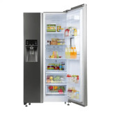 این مدل با گنجایش بالا، مناسب برای ذخیرهسازی مواد غذایی در حجم زیاد است و چیدمان ساید بای ساید آن با فریزر سمت چپ و یخچال سمت راست، دسترسی آسان و استفاده بهینه از فضا را ممکن میسازد.
