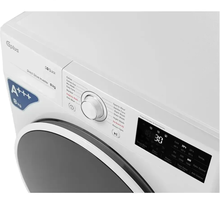 ماشین لباسشویی جی پلاس مدل GPlus GWM-P87 ظرفیت 8 کیلوگرم دارای برنامه های متنوع همچون :
