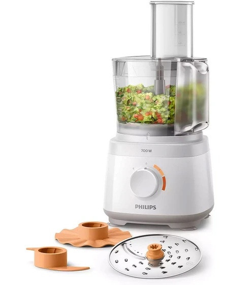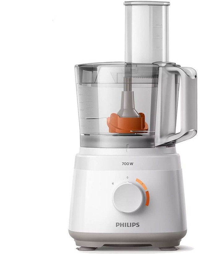 این غذاساز فیلیپس 7310 قادر است توسط طیف وسیعی از تیغه ها، 16 کار مختلف شامل رنده، تکه تکه کردن، قیمه، سالاد ساز، میکسر، ورزن خمیر و ... را انجام دهد. با داشتن چنین ابزاری در آشپزخانه شما تنها توسط یک موتور قادر خواهید بود که بسیاری از نیازهای روزانه آشپزی را با آن انجام دهید. ظرفیت اسمی کاسه غذاساز فیلیپس مدل HR7310 برابر است با 2.1 لیتر اما برای تهیه خمیر شما تنها می توانید از 1.5 لیتر از فضای کاسه را پر کنید و برای یک خانواده 5 نفره کافی است تا بتوانید انواع خوراکی شامل سالاد، میلک شیک، اسموتی، کوکتل و ... را آماده نمایید همچنین با بهره بردن از موتور قدرتمند 700 وات و تیغه های فوق العاده کارآمد قادر خواهید بود در کمتر از یک دقیقه حجم زیادی از مواد غذایی را آماده نموده سپس سریعا کاسه را در ظرف دیگری تخلیه و دوباره آماده کار کردن گردد.